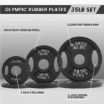 Upgrade your home gym with the Olympic Weight Plate Set, designed for strength training, weightlifting, and full-body workouts. The rubber-coated grip plates provide durability, floor protection, and easy handling during exercises.